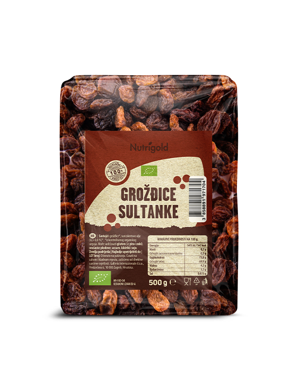 Okusne Nutrigold rozine, bogate s sladkimi aromami, so ekološki izdelek iz certificirane ekološke pridelave, pridobljen s skrbnim postopkom sušenja. Priljubljene so zaradi sladkega okusa, zaradi česar so odličen nadomestek za sladkor in druga sladila, okus pa pogosto primerjajo z okusom medu.
