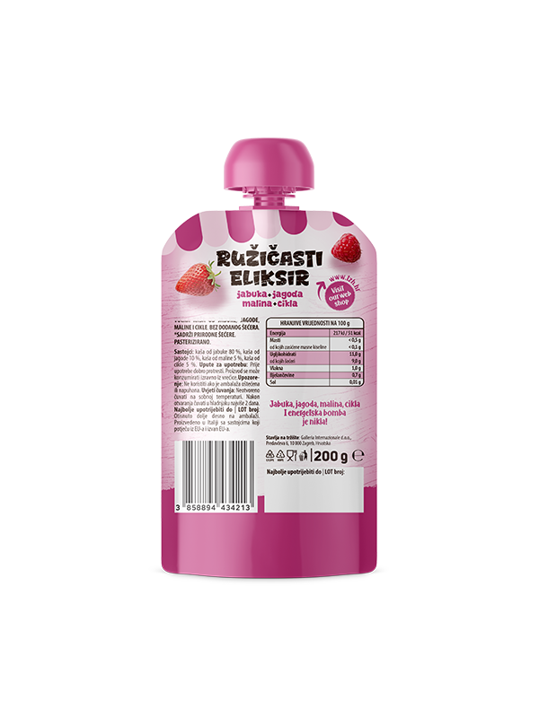Nutrigold Rožnati eliksir smoothie je poln osvežujočega sadja in hranljive zelenjave v okusni in praktični kombinaciji. Ko se v enem izdelku združijo jabolko, jagoda, malina in rdeča pesa, rezultat ne more biti nič drugega kot naravno rahlo sladek, osvežujoč napitek, ki pravkar postaja vaš najljubši!