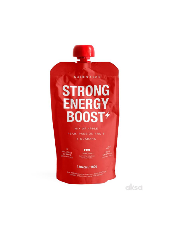 Nutrino Strong Energy Boost je sadni prigrizek, ki združuje osvežujoč okus in funkcionalne prednosti – idealen za trenutke, ko potrebujete hiter in naraven energijski zagon.