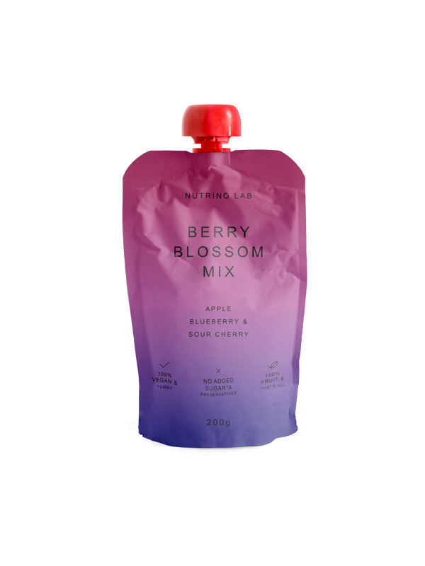 Nutrino Lab sadni snack je popolna kombinacija sočnih jabolk, sladkih borovnic in kislih višenj.