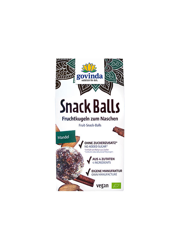 Govinda mandljeve kroglice vsebujejo štiri ekološko certificirane sestavine, ki zagotavljajo visoko kakovost in bogat okus. So primerne tako za vegetarijance kot vegane.