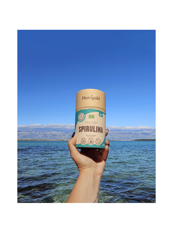 Nutrigold spirulina v prahu je pridobljena s skrbnim postopkom mletja 100% ekološke, visoko kakovostne modrozelene alge spiruline, ki je ekološki gojena.