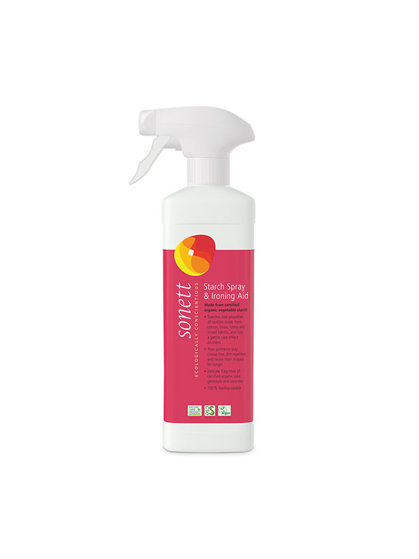 Biorazgradljivo. Ni primerno za svilo, rajon in druge sintetične vlaknine. Sprej škroba lahko povzroča spolzka tla.