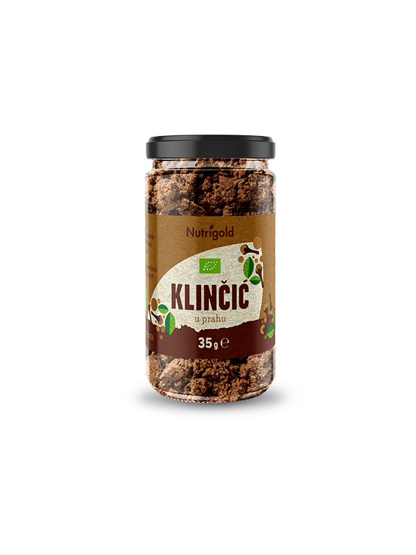 Nutrigold klinčki v prahu prihajajo v praktični steklenici 35g. Drugače kot celi klinčki, klinčki v prahu so bolj praktični za uporabo, zlasti pri pripravi tort, ker se lažje homogenizirajo z drugimi sestavinami, ki jih uporabimo. Nepogrešljiva je sestavina veliko znanih mešanic začimb kot so Garam Masala ter Curry.