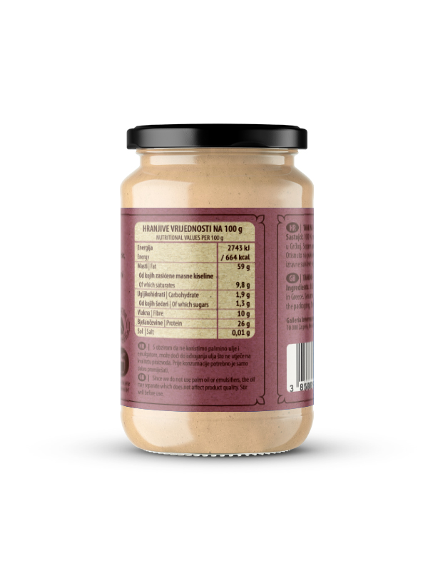 Tahini Nutrigold je odličen dodatek k vaši prehrani, saj predstavlja pravo zakladnico esencialnih hranil. Bogat je z beljakovinami, zdravimi maščobami, vlakninami, vitamini in minerali, kot so kalcij, magnezij in železo. Ne glede na to, ali ste ljubitelj bližnjevzhodne kuhinje ali iščete nov način za obogatitev svojih receptov, je naš beli tahini odlična izbira za vse vaše kulinarične podvige.