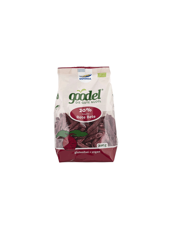 Brezglutenske, veganske testenine z rdečo peso, proizvedene v Nemčiji.