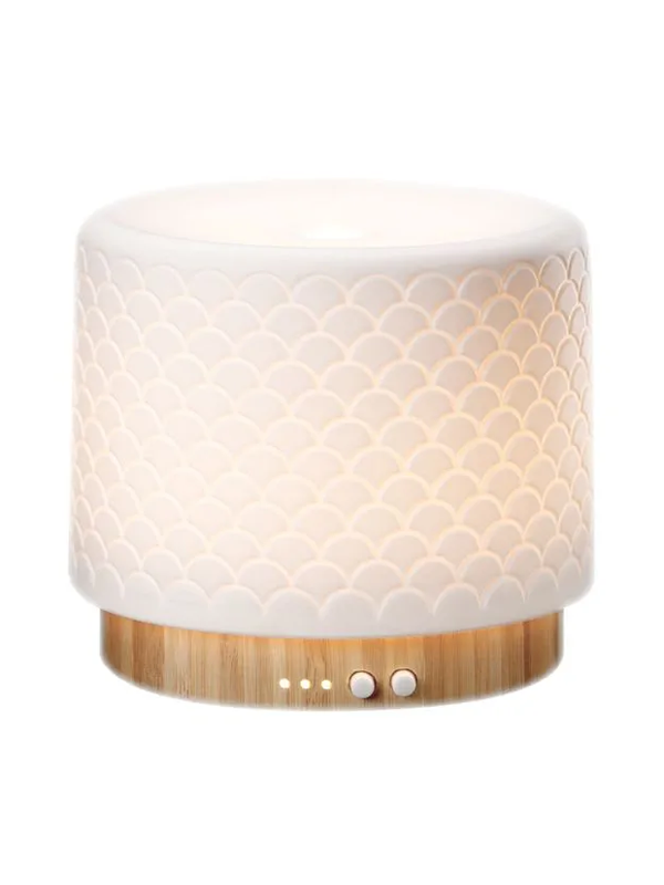Svetlobni efekti: Naprava je opremljena s toplo belo svetlobo, ki jo je mogoče nastaviti v dveh različnih jakostih, kar ustvarja prijetno vzdušje.