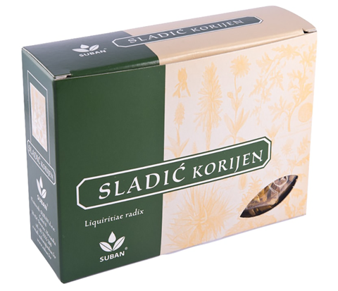 Sladki koren (Glycyrrhiza glabra) je rastlina, ki se tradicionalno uporablja v številnih kulturah po vsem svetu, posebej pa je cenjena v tradicionalni kitajski in ayurvedski medicini. Sladki koren vsebuje spojine, ki imajo protimikrobne lastnosti, kar pomaga pri zmanjšanju vnetja v želodcu ter pri lajšanju simptomov kot je napenjanje, bolečine in neprijetnosti. Nekatere spojine v sladkem korenu imajo protimikrobne lastnosti, kar pomeni, da pomagajo pri zaviranju rasti bakterij, ki lahko poslabšajo gastritis, kot je Helicobacter pylori. Pomembno je omeniti, da sladki koren moramo uporabljati s previdnostjo, saj lahko dolgotrajna ali prekomerna uporaba povzroči neželene stranske učinke, kot je povišan krvni tlak ali zadrževanje tekočine, zato ga ne smete uporabljati več kot nekaj tednov brez prekinitve.