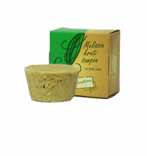 Naravni trdi šampon za suhe in poškodovane lase vsebuje naravne sestavine kot je kopriva, melisa in oljčno olje. Vsaki izmed sestavin je dodan da obnovi lase in vzpostavi ravnotežje lasišča. Kopriva krepi lase ter preprečuje izpadanje lase in pojavu prhljaja, melisa vlaži lase, zagotavljajoč jim naraven sijaj in oljčno olje globinski hrani lase in ohranja njihovo čvrstost. KMT trdi šampon ne vsebuje dodanih konzervansov, prijeten vonj pa je zaradi eteričnih olj, ki so mu dodane.