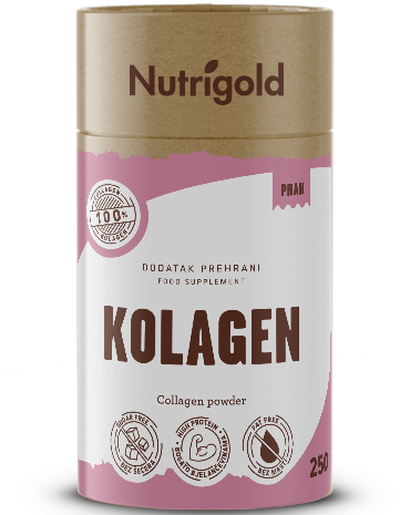 Če imate raje kolagen v prahu in iščete kolagen, ki bo blagodejno vplival na vašo kožo, lase in nohte, izberite Nutrigold Collagen+ za kožo, lase in nohte. Je kompleksen hranljiv kolagen v prahu za tonus in elastičnost kože, ki se priporoča vsem, ki želijo na kožo delovati od znotraj, še posebej ženskam po 30. letu starosti. Vsebuje Naticol® - ribji kolagenski peptid tipa 1 in ima najboljši učinek na kožo, lase in nohte, saj njegove molekule človeško telo odlično absorbira. Formula Nutrigold je obogatena s cinkom in vitaminom C, ki prispevata k boljši absorpciji Naticol®. Kolagen Nutrigold ne vsebuje soli in "slabih maščob", poleg tega pa je bogat z beljakovinami in vitaminom C.