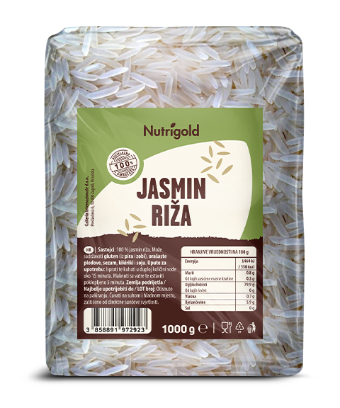 Jasmin riž, ki se goji na Tajskem, vnaša eksotiko in romantiko v vsako jed. Med kuhanjem ta riž razvije prijetno aromo jasmina, ki dodaja poseben pečat. Jasminov riž je idealna izbira za pripravljanje raznih tradicionalnih azijskih jedi, vključno s curryji in jedi stir-fry. Njegova vlažna in mehka tekstura je idealna za vpijanje začimb in okusov, zaradi česa je popoln za curry, ocvrte jedi ali za druge specialitete tajske in azijske kuhinje. Ker jasminov riž odlično vpija okuse, je vsak grižljaj obogaten z bogatimi aromami. Odlična aroma jasmina dodaja eksotični stik in sofisticiranost k vsaki jedi, ter tako ustvarja gastronomsko doživetje, ki bo zadovoljilo vse čute.
