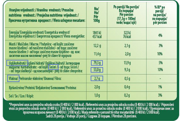 Previdno! Na hranilnih tablih škrob najpogosteje ni omenjen, vendar se iz table lahko preberejo_