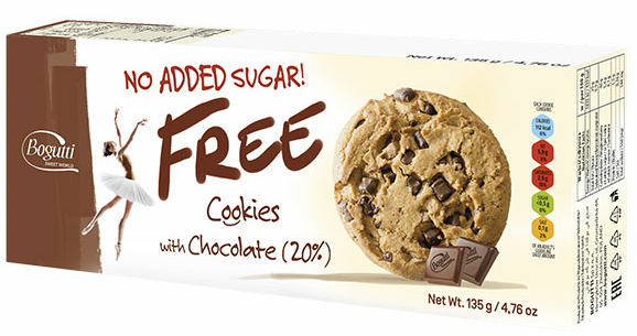 Piškoti z visokim deležem vlaknin z dodatkom čokolade brez sladkorja. Hrustljavi in okusni piškoti z razlito čokolado popolno se ujemajo s skodelico kave ali čaja, nenadomestljiva pa so sestavina vseh sladkih zajtrkov.