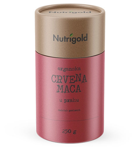 Rdeči maca prah je pridobljen iz korenin odporne maca rastline, ki zlasti raste v Andah, na visoki nadmorski višini. Korenina se običajno zmelje in prodaja v obliki prahu, na trgu pa jo najdemo tudi v obliki kapsul in tekočega izvlečka. Nutrigold rdeči maca prah je SUPERHRANA, zaradi številnih vitaminov in mineralov, ki jih vsebuje in daje vašemu telesu. Izdelana je v nadzorovanih pogojih od korenine visoke kakovosti, ki prihajajo iz certificirane ekološke pridelave. Rahlega je in prijetnega okusa, drugače kot drugi maca prahi, zato je kot nalašč za ljudje prefinjenega okusa. Rdeča maca je redki tip perujske korenine, in se še imenuje maca za ženske, vendar je lahko uporabljajo tudi moški. Maca se tradicionalno uporabljala kot afrodiziak. Stare Inke so jo uporabljale tudi za: