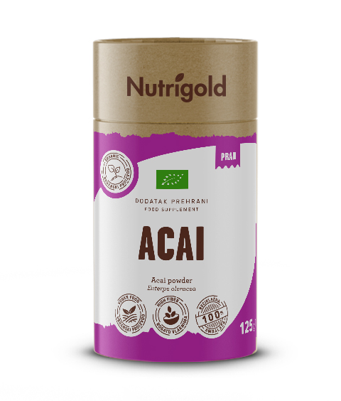 Acai jagodice so tropsko sadje, ki raste na palmah v brazilskem območju Amazonskega pragozda kot tudi na kolumbijski obali Pacifika. Plodovi rastline so majhne, okrogle, črno-vijolične jagode, po videzu podobne grozdju, ki s svojo barvo dajo prepoznaven in privlačen videz jedem in pijačam. Bogat hranilni sestav teh majhnih jagod je pravi zaklad zdravja. Dober profil nenasičenih maščobnih kislin ter vitaminov in mineralov bodo odlično dopolnile vašo vsakodnevno prehrano. Njegova enostavnost in pestri način uporabe pa vas bosta navdušili.