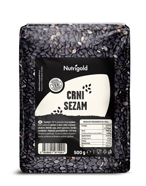 Črni sezam je sezam v svoji naravni ekološki obliki, prej procesa luščenja in čiščenja. Črni sezam lahko vsebuje antioksidante in nekatera hranila, v primerjavi z belim sezamom zaradi svoje temnejše barve. Blagodejno deluje na celotno telo. Je bogat s kalcijem, magnezijem, fosforjem, cinkom, selenom, vitaminoma A in B, krepi kosti, nohte in zobe. Je nekoliko intenzivnejšega, oreščkastega okusa, pogosto pa ga je težko najti v nekaterih območjih.