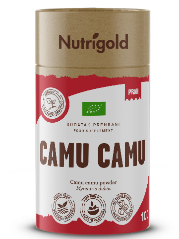 Camu camu je rdeče-vijolično tropsko jagodičevje, ki raste v Južni Ameriki in je znano po izjemno visoki koncentraciji vitamina C. To tropsko prehransko dopolnilo podpira zdrav imunski sistem in pomaga v boju proti utrujenosti in stresu. Vitamin C je ključen za proizvodnjo energije v telesu, spodbuja absorpcijo železa in zmanjšuje tveganje za okužbe, zaradi česar je camu camu odličen dodatek za naravno povečanje energije. Vsebuje velik delež kalcija, ki je nujen za vzdrževanje normalnih kosti in zob, hkrati pa prispeva k normalni presnovi, delovanju mišic, prenosu živčnih impulzov in ima vlogo pri procesu celične delitve in diferenciacije. Dodajte ga smutiju, kaši ali ga zmešajte z vašim najljubšim sokom. Verjemite, vaše razpoloženje in energija bosta pokazala vse rezultate.