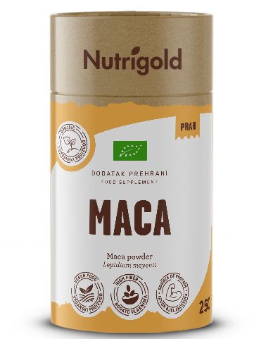 Maca prah je izdelek, ki je pridobljen z mletjem korenine rastline maca, ki je doma v visokih gorah Peruja. Zaradi svojih adaptogenih sposobnosti lahko maca v prahu močno vpliva na energijo. Adaptogeni so snovi, ki telesu pomagajo pri prilagajanju na stres in spremembe v okolju ter s tem pomagajo ohranjati ravnovesje in stabilnost. Glede na to, da podpira procese prilagajanja in vzdržljivosti telesa lahko maca v prahu pomaga zmanjšati utrujenost in povečati energijo. Poleg tega maca vsebuje vitamine B-kompleksa, vključno z vitaminom B12, ki je nujen za proizvodnjo energije v telesu. Prav tako maca v prahu vsebuje esencialne maščobne kisline, beljakovine, vlaknine in minerale, kot so železo, cink in magnezij, ki so pomembni za ohranjanje energije in vitalnosti. Zaradi intenzivnega okusa jo je najbolje zmešati s sadnimi sokovi in napitki, kljub nenavadni aromi pa pričakujte odlične rezultate!